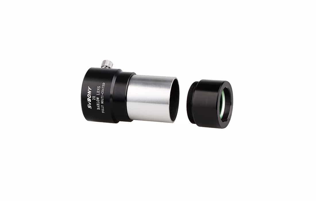 Svbony 1.25'' 2x barlow lens for astronomy telescope eyepiece, can effectively doubles the magnification of each eyepiece.
