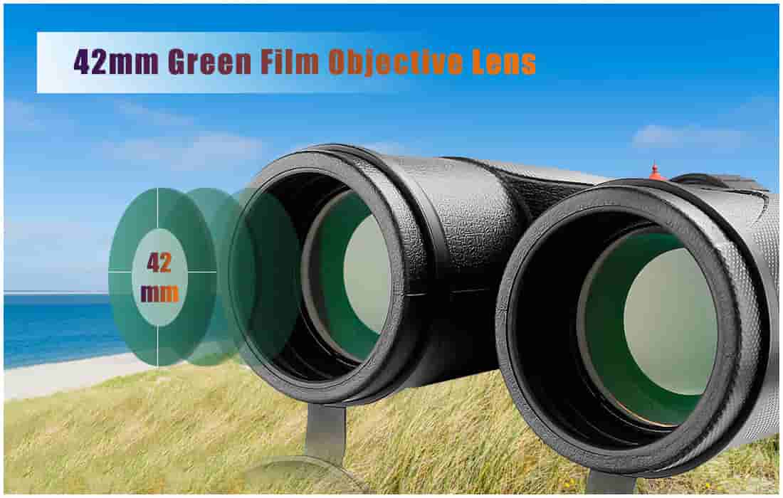 1.Best 42mm fully multi-layer coatings green film objective lens and 18.5mm blue film eyepiece, BK7 prism, guarantee the key elements of an optical device, make your view brighter, clearer and deliver crisp images.
