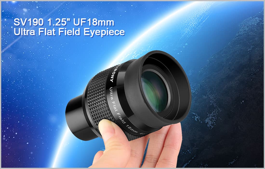 1.The SV190 Ultra Flat Field telescope eyepieces. With a generous 65° apparent field of view, these eyepieces provide more field of view than typical Plossl eyepieces, all the while providing a fantastic image from the center to the edge.