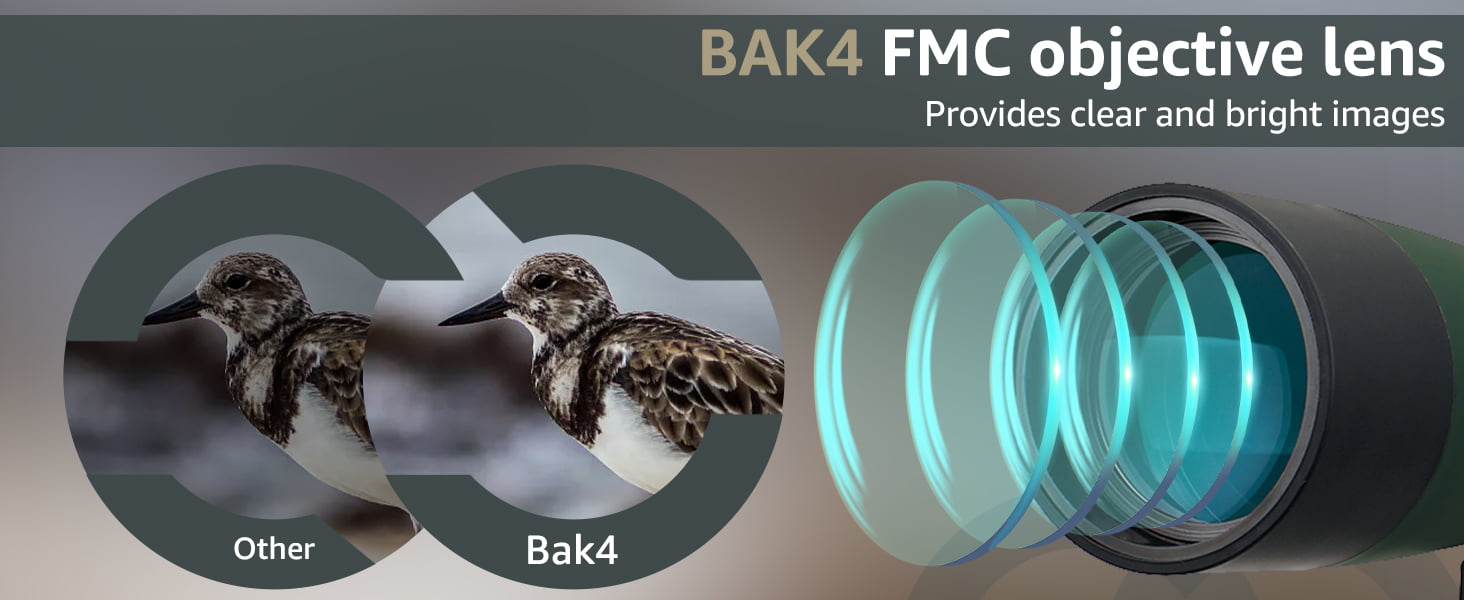- FMC BAK4 prism allows more light to enter the objective lens, providing you with clearer and brighter images;