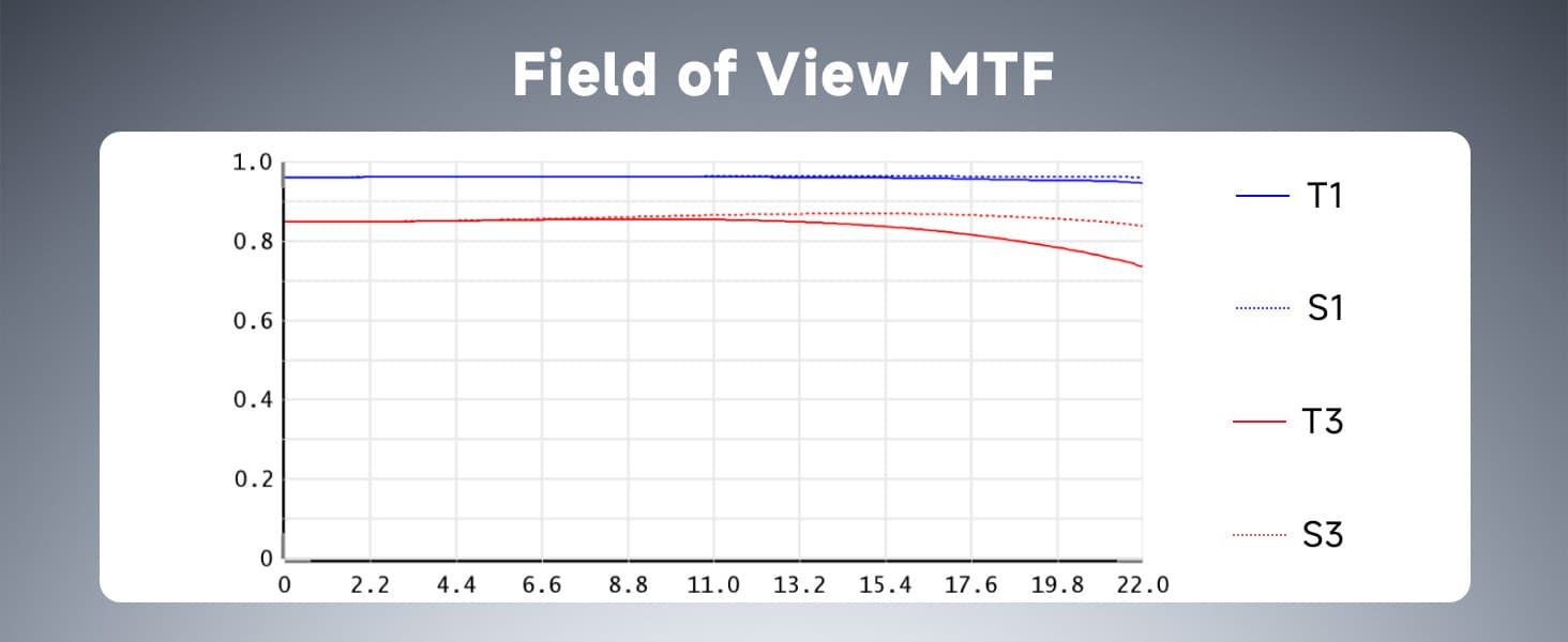 - Wide Field Petzval Design; 3-group 5-piece objective lens structure;