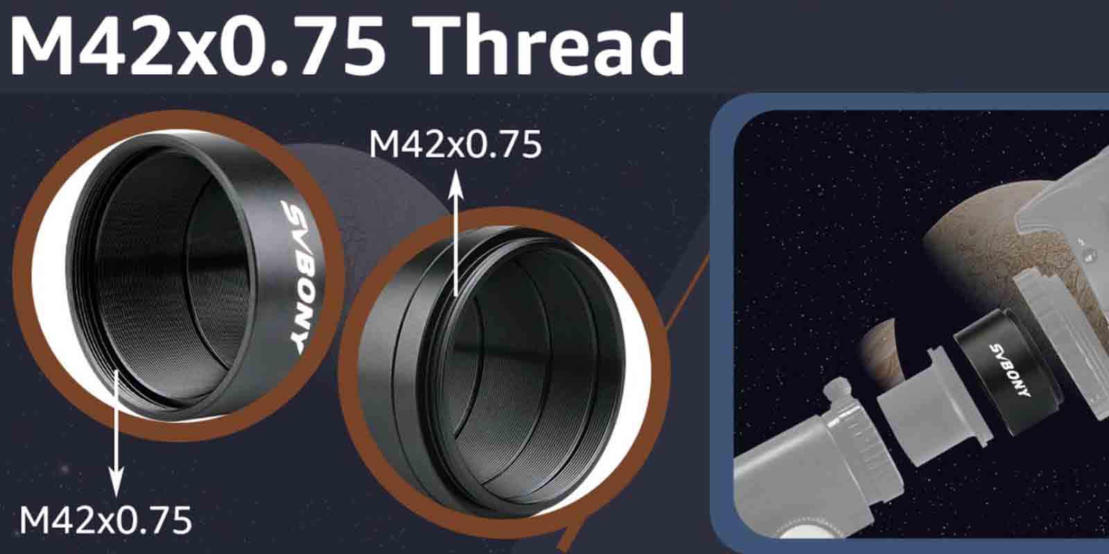 The male thread and female thread of this M42 extension tube are M42x0.75mm, which can attach any M42X0.75mm telescope camera adapter.